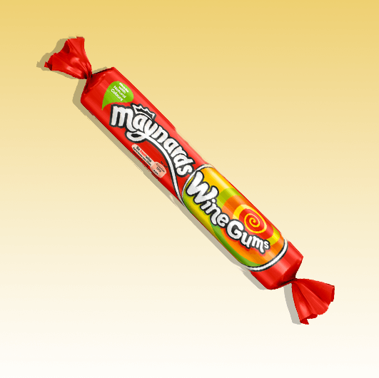 ![]() | Maynard’ss Fruit Gums (roll) | Maynards Fruit Gums. Delicious fruit-flavoured chewy gums made in a variety of dazzling colours, stamped with signature wine labels. | $28.99 | |