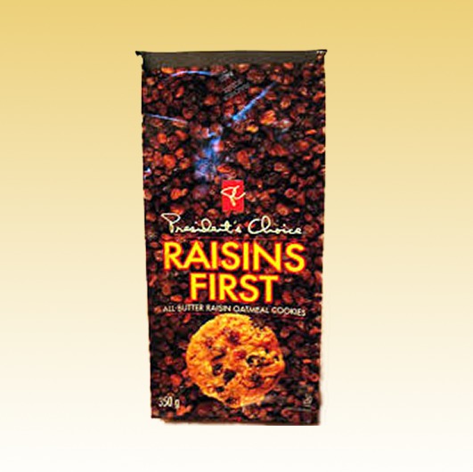 Raisins First the sweet tender raisins in crispy oatmeal cookies made with rolled oats make a delicious addition. Each bite is crunchy and buttery with a hint of sweetness. Enjoy at home for a quick and delicious snack or take them to work and while traveling. For special treatment, heat them in the oven or in the microwave before serving. 400g per bag. Visit our Cookies Section for more options.